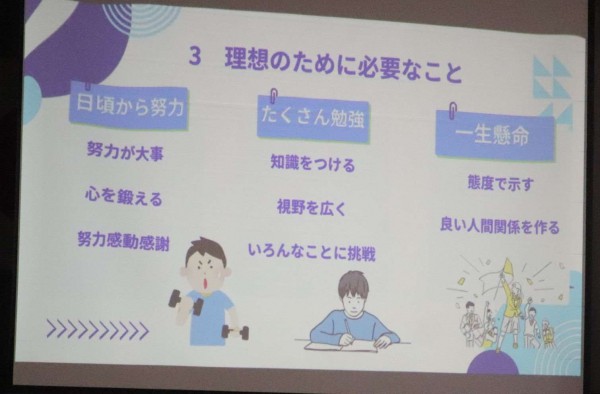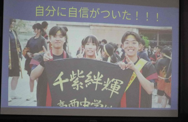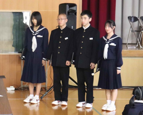 10月29日(水)「令和7年度 高西中学校区 志プロジェクト 総合的な学習の時間発表会」を本校体育館で開催しました。西藤小学校、高須小学校の6年生に対して、中学3年生の代表4名が、総合的な学習の時間に学んだ「わたしの生き方探究」を発表しました。