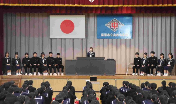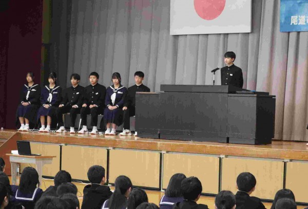 1月7日(水)第3学期 始業式・リーダー研修会報告に続いて、「生徒会役員認証式」と「生徒会役員引継ぎ式」が行われました。