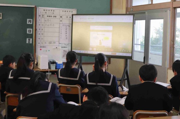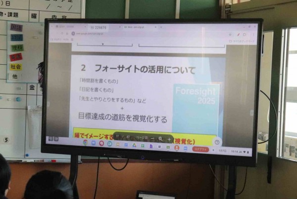 1月7日(水)「全校学活」をリモートと放送によって行いました。校長先生の挨拶のあと、担当の先生からの話を受けて、よりよく生きるために、今年度の目標の進捗状況の2学期までの取組を振り返り、「なりたい自分」に向けて、修正、再設定を行いました。