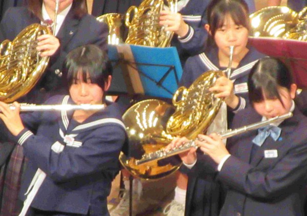 2月1日(日)午後1時30分から、しまなみ交流館において、尾道ライオンズクラブ主催、「第45回 高等学校合同演奏会」が開催されました。このステージに市内中学校4校の吹奏楽部が参加しました。本校吹奏楽部も20名が参加しました。前日の練習も含めて、生徒たちはこの貴重な経験を生かそうと精一杯頑張りました。合同演奏では「アフリカン・シンフォニー」と合唱「Believe」を披露しました。尾道商業高等学校とのコラボレーションで3曲を披露しました。保護者の皆様、ご協力ありがとうございました。