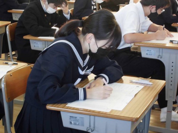 11月11日(金)に,2年生が英検IBAテストに挑戦しました。英検IBAテストは,尾道市の全ての学校,全ての学年で実施されます。この英検IBAテストで,1年時から身についた英語力(4技能)を確認することができます。英検級レベル判定が出されるので,これから英検を受けようとする場合には,目標級が定めやすくなっているので,学習の目標が立てやすくなります。結果を上手に役立ててくれたらと思います